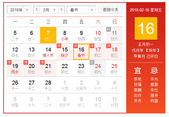 春节放假时间:2018/02/13(星期二)--2018/02/21(星期三)。